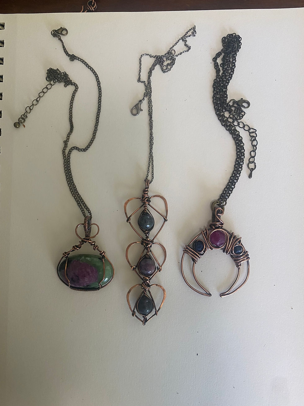 Jo-Ann's sister Avis Haynes is a talented jewelry artist specializing in copper-wrapped designs that blend timeless craftsmanship with natural beauty. Drawing inspiration from the organic shapes and textures found in nature, Avis uses copper wire to delicately encase gemstones, crystals, and other natural elements, creating one-of-a-kind pieces that are as much works of art as they are wearable treasures.